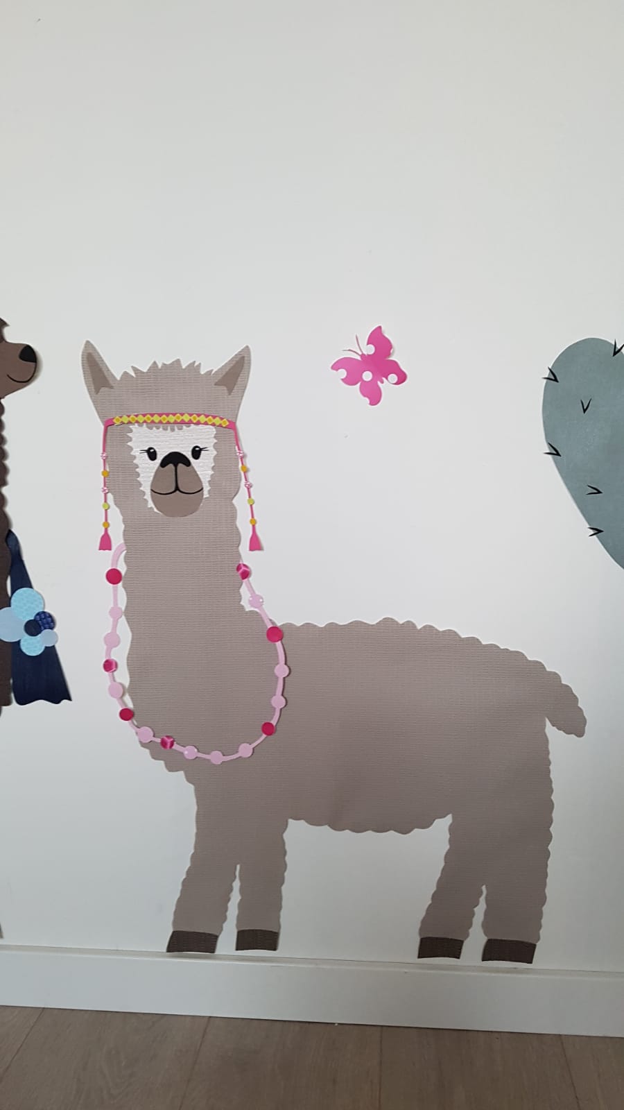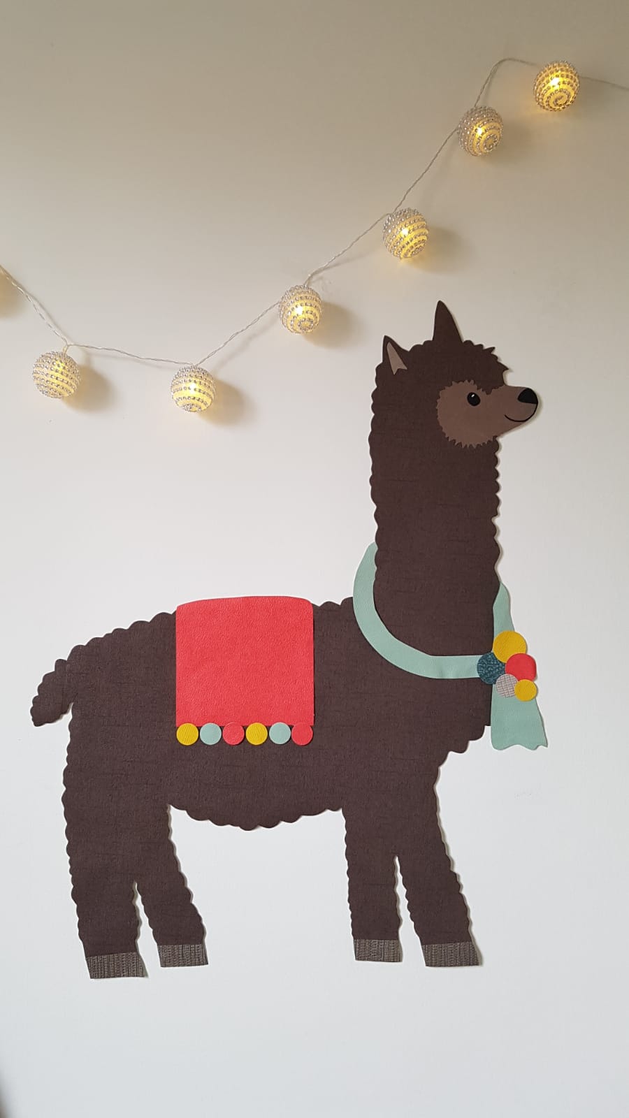 De alpaca, ik zag hem op een kaart in de winkel, toen ik een beterschapskaart uitzocht voor een kennis. Het grappige beest met zijn sprekende ogen bracht meteen mijn creatieve brein op hol! Dit was waar ik naar op zoek was, de alpaca zou mijn nieuwste behangdecoratie worden.
