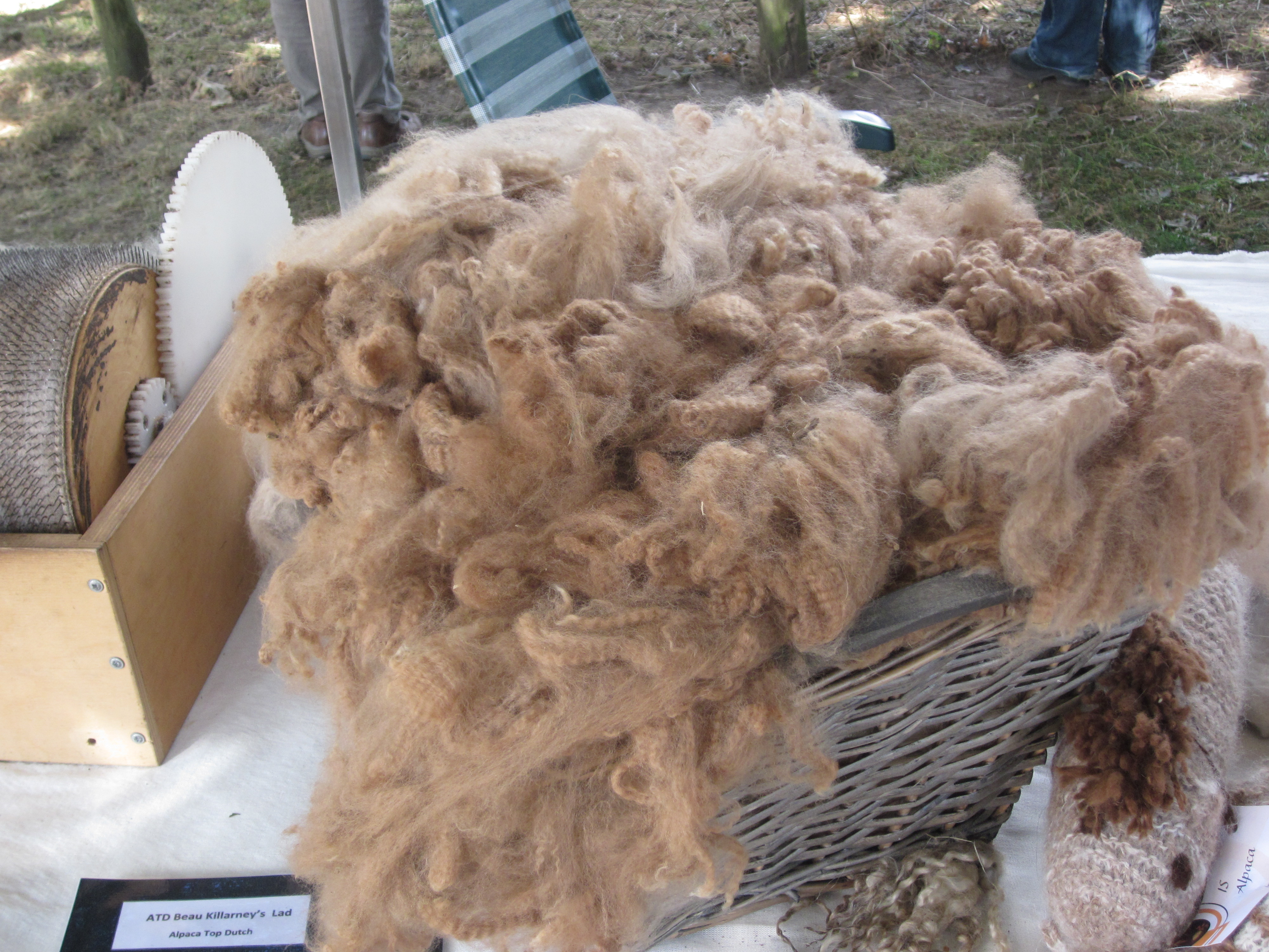 Thuis gekomen ben ik informatie gaan opzoeken over de alpaca. Ik vind het altijd fijn om iets van de achtergrond te weten voor ik me in een nieuwe creatie stort. De alpaca blijkt familie te zijn van de kameel. Ze komen voor in Afrika, Azië en Zuid-Amerika. De alpaca wordt regelmatig verward met de lama (die ook familie is van de kameel). Naast dat de alpaca een stuk kleiner is als een lama, hebben alpaca’s ook een veel zachtaardiger karakter dan de lama. Alpaca’s spugen eigenlijk zelden. Ook de oren verschillen. De alpaca heeft rechte, spitse oren. Een lama heeft meer kromme oren. Lama’s hebben, in tegenstelling tot de alpaca, geen vacht, maar haar. Dit lama haar kun je niet spinnen, terwijl de alpaca een vacht heeft die ieder jaar geschoren moet worden. Deze wol kun je spinnen en zo heb je dan de welbekende alpaca wol. En er is nog een verschil. De lama is een lastdier en zijn rug is zeer geschikt om vracht te dragen. Dit geldt niet voor de alpaca, zijn rug kan eigenlijk niets dragen.
