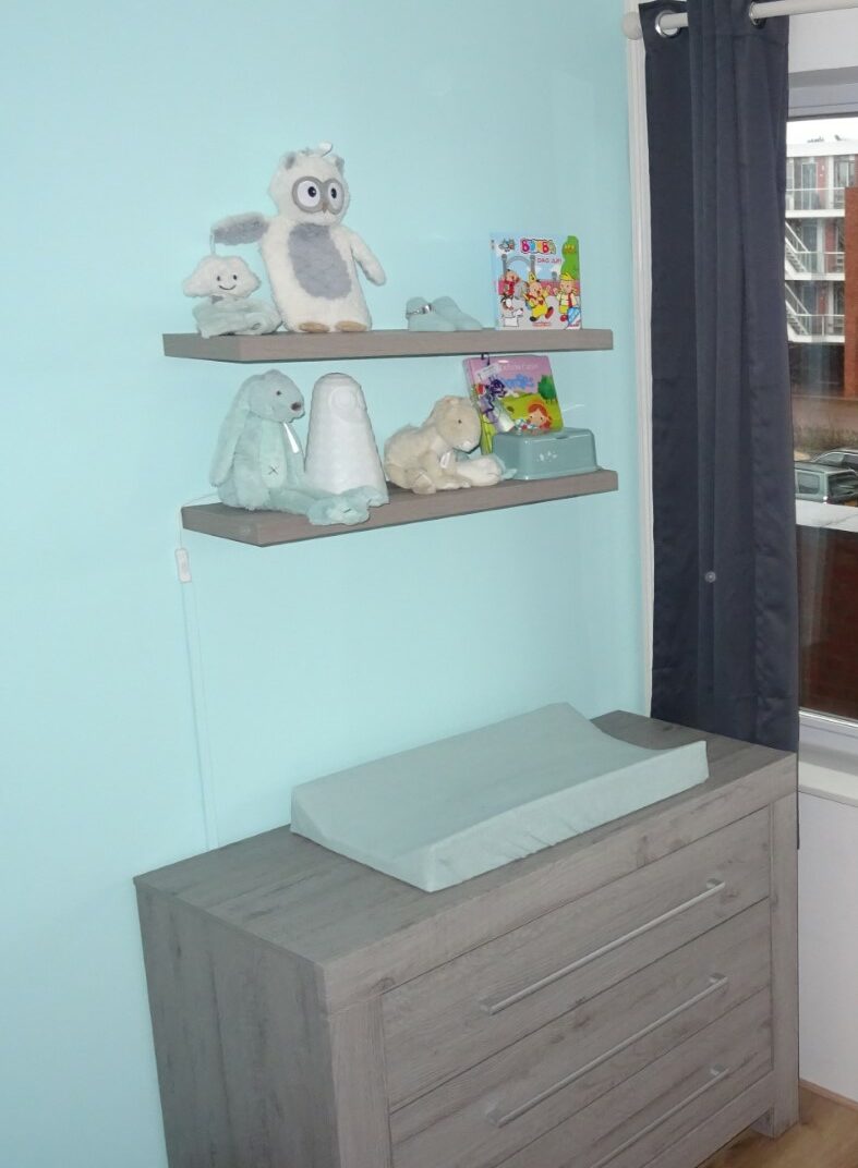 We wonen in een appartement met een kamertje over, die wij al snel hebben omgebouwd tot kinderkamer. Nog voor wij überhaupt wisten dat wij een kindje zouden krijgen, wisten wij al welke kleur de kamer moest krijgen: grijs, wit en mintgroen. We hebben dezelfde stijl door het hele huis heen, dus de keuze was snel gemaakt.