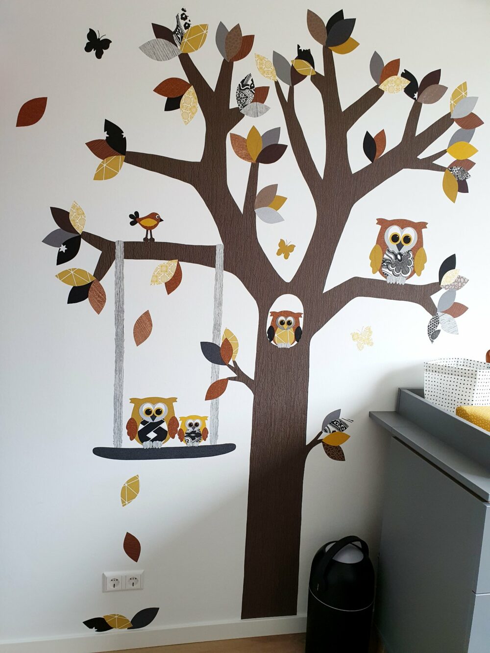 behangboom muursticker babykamer behang okergeel zwart roest newborn zwangerschap