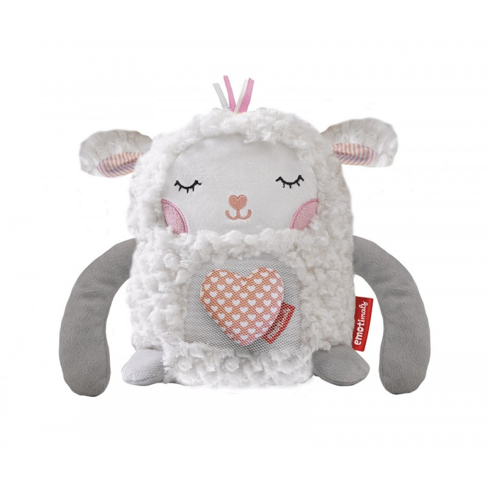 Deze knuffel heeft het handige formaat om aan een buggy of maxicosi te bevestigen. In de knuffel bevind zich een hart dat je eruit kunt halen. In het onderstaande filmpje kun je zien hoe je hiermee 1 berichtje of een liedje kunt opnemen. Wanneer je kindje met de knuffel schud zal hij/zij jou ingesproken stem horen.