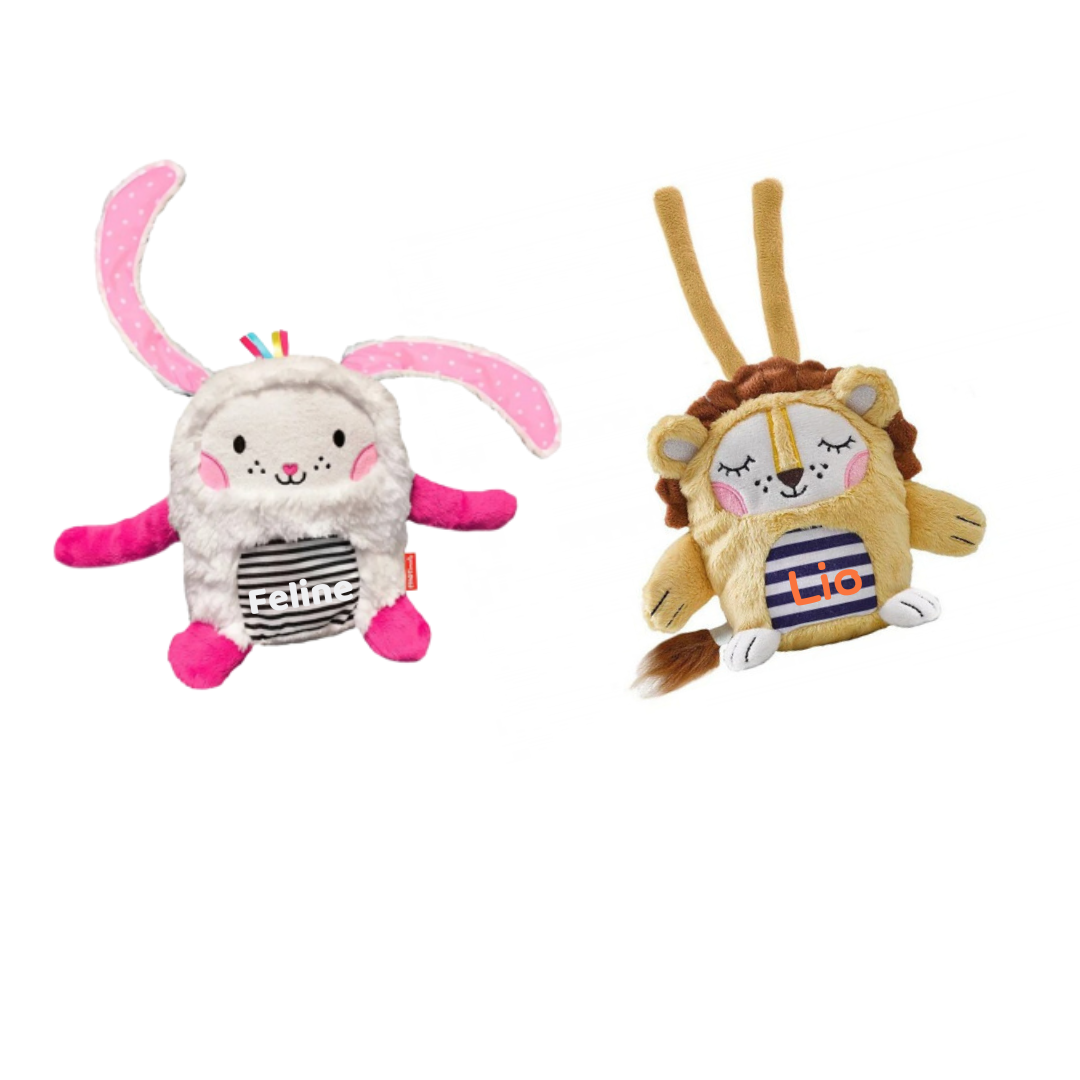 Wanneer je kindje met de knuffel schudt zal hij een berichtje laten horen. Heeft jouw knuffel de mogelijkheid voor 3 berichtjes, dan zal de knuffel steeds een andere berichtje laten horen. Het geluid is goed verstaanbaar. De batterijen zijn vervangbaar als ze leeg zijn.