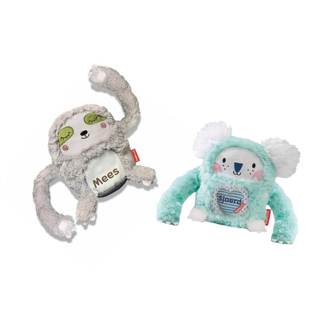 knuffel in wasmachine              knuffel met naam en voice recorder luiaard