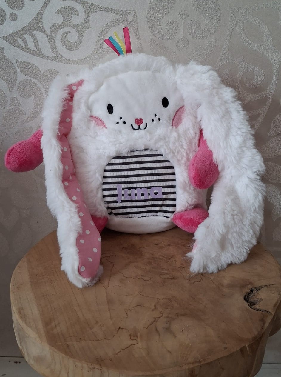 Geef deze knuffel een persoonlijke touch en laat gratis de naam van je kindje op deze knuffel zetten door ons!