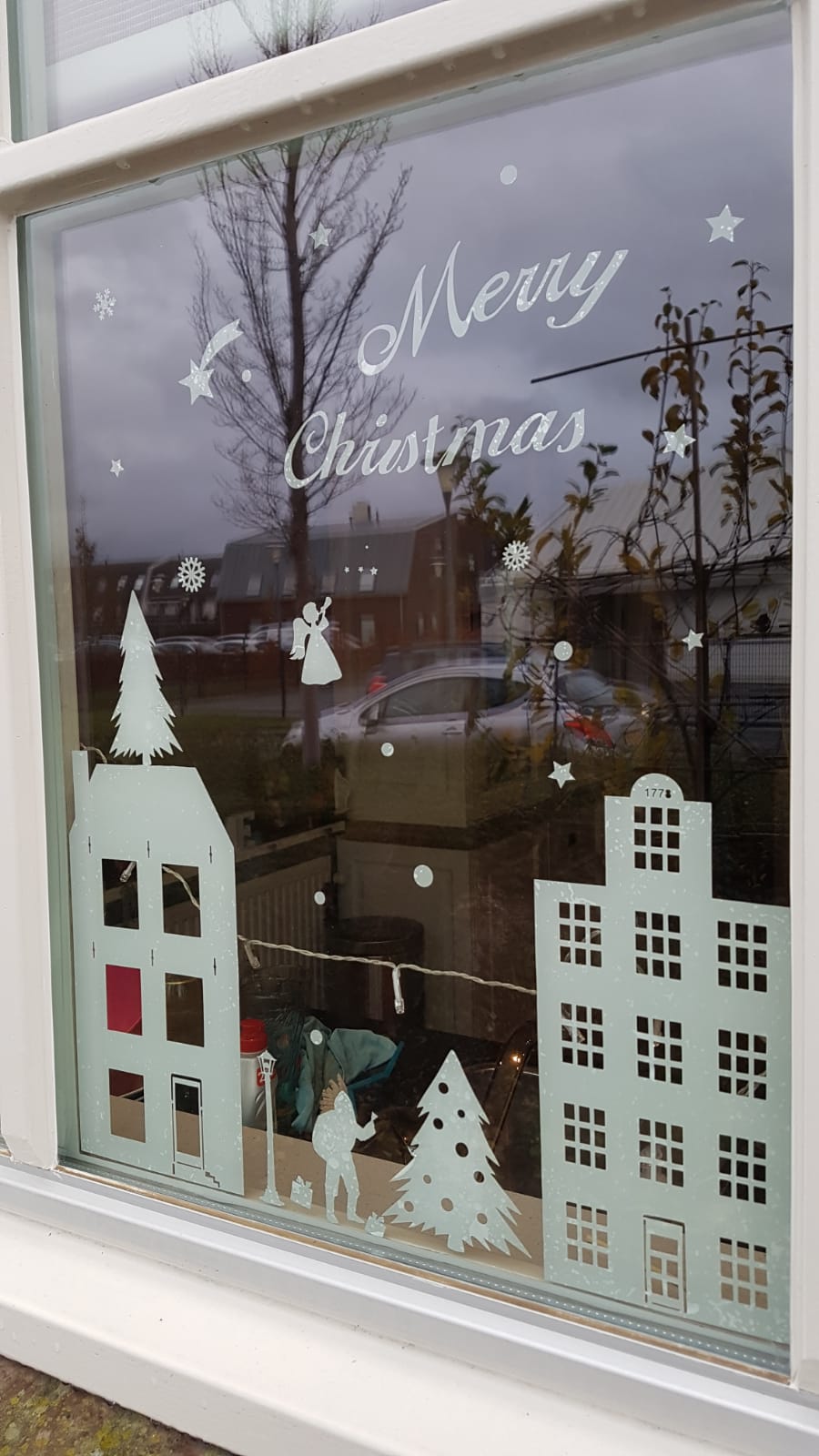 Sinterklaas is inmiddels weer terug naar huis en de Sinterklaas versiering is opgeruimd. Voorzichtig heb ik de raamstickers van de Sint verwijderd van mijn raam en ze terug geplakt op de drager. Ik berg ze netjes plat op voor volgend jaar! De raamstickers met de kerstversiering heb ik te voorschijn gehaald. De huisjes raamstickers heb ik laten zitten. Dat staat zo gezellig! Nu de kerstversiering er bij plakken.