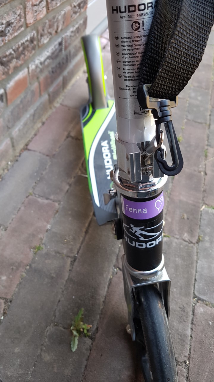 We gingen meteen aan het plakken! De naamstickers plakten we op haar broodtrommel, haar drinkbeker, haar tandenborstel, en op haar nieuwe step. De instijklabels streek ik in haar kleding. Er zit goede beschrijving bij hoe je dat het beste kunt doen. (Let erop dat je je strijkijzer niet te heet zet). Heel handig om geen kleding meer kwijt te raken op school, de BSO of tijdens haar logeer weekenden. De schoenlabels plakte ik in haar gymschoenen.