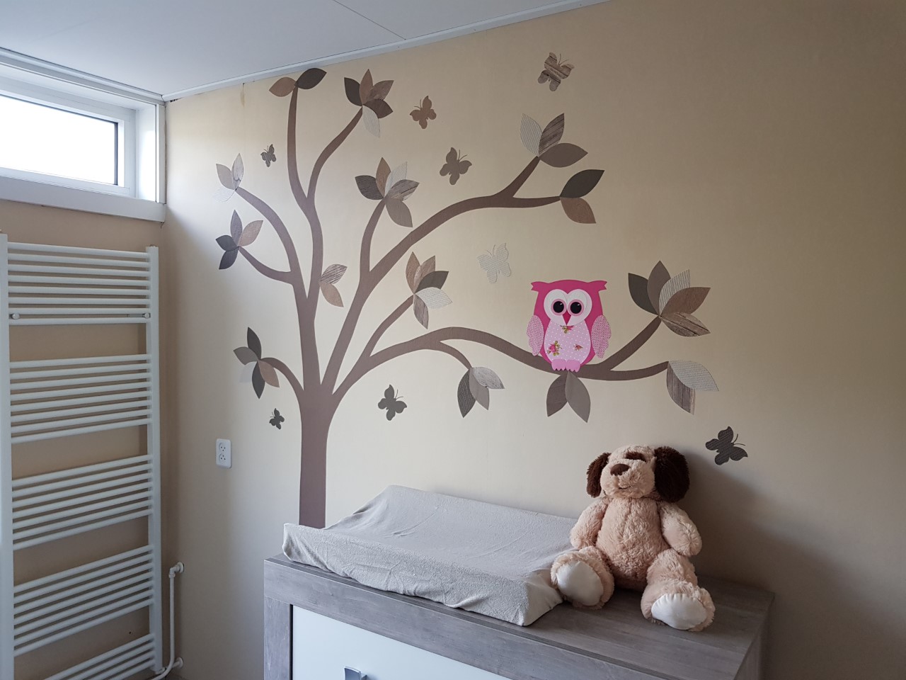 De eerste behangboom ontstond toen wij gingen verhuizen in 2011. We wilden iets op de slaapkamer muur van de kinderen. Met een beetje snuffelen op internet viel mijn oog op een behangboom. Nog niet eerder had ik er van gehoord, maar het leek me zeker een prachtige decoratie voor de kinderkamer. Helaas bleek de prijs erg tegen te vallen en kon ik niet kiezen voor een ander design. Ook in kleuren was ik erg beperkt. En ik wilde iets unieks.